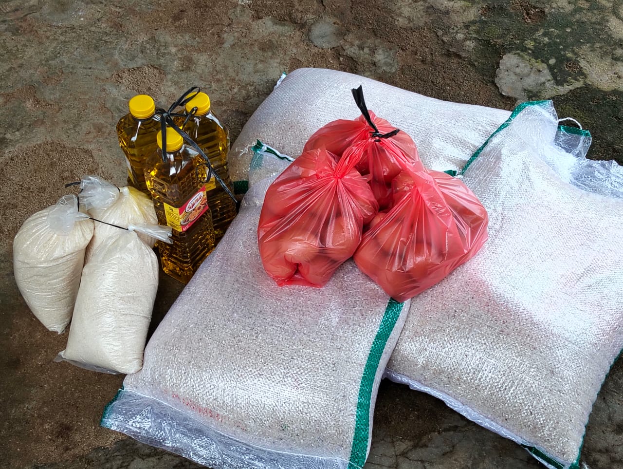 “Kami hanya menerima 3 sak beras, satu setengah karpet telur, 3 botol minyak makan, 3 kilo kentang, 3 bungkus gula pasir”,ucap salah seorang warga