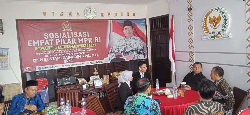 Sosialisasi Empat pilar yang disosialisasikan itu menjadi pedoman hidup bagi bangsa Indonesia, Senator Lampung Bustami Zainudin yang juga Mantan Bupati Kabupaten Way Kanan Periode 2010-2015 tersebut menyampaikan arti pentingnya empat pilar kebangsaan yang menjadi pedoman.